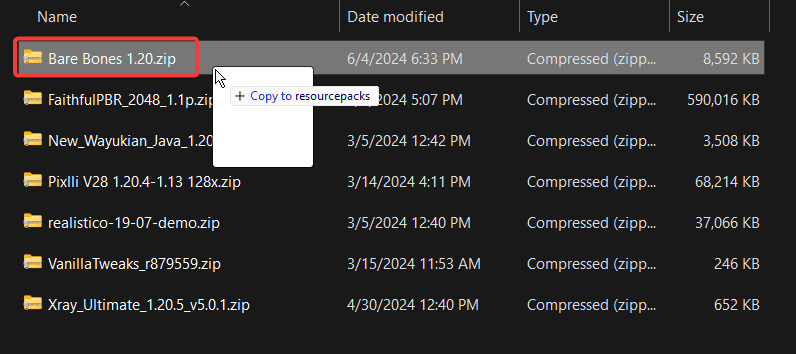 Once we downloaded the file in the previous step, head over to the Resource Packs folder for your Minecraft installation.