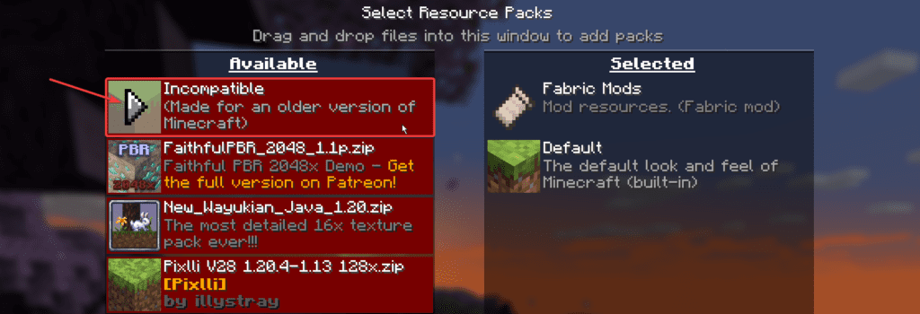 The pack might say “Incompatible” if you are using a different version of Minecraft than the one you downloaded the pack for. However, we recommend that you try running the texture pack, as it might still work with the version of Minecraft you are using.