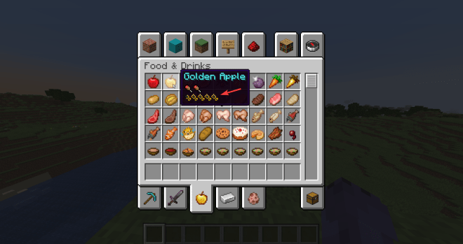 And now you can simply go to a world and enjoy the AppleSkin mod fully working in Minecraft.