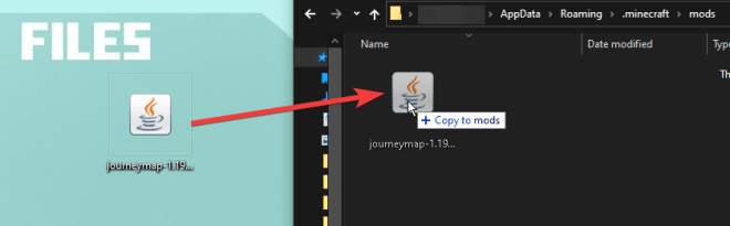Go ahead and drag and drop the JourneyMap mod file to your desktop.