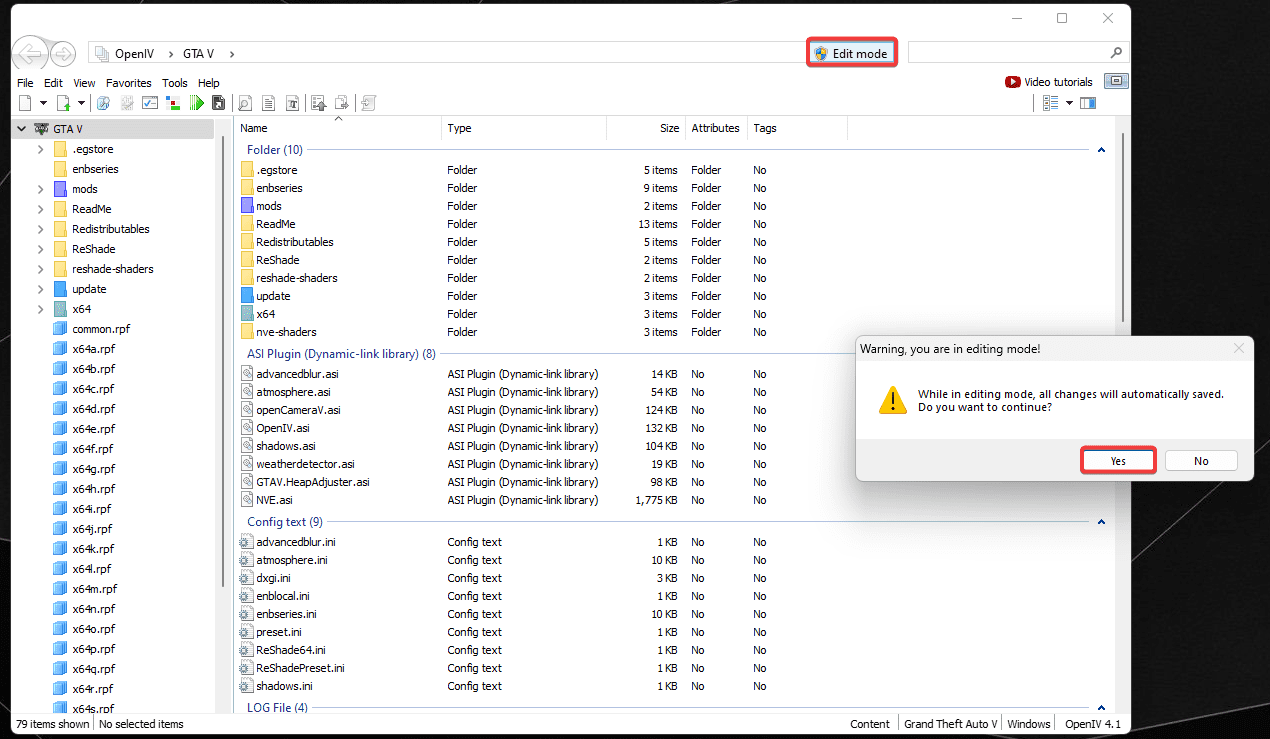 Launch OpenIV and enable Admin Mode