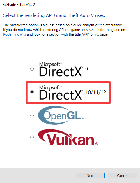 Now select Microsoft DirectX 10/11/12 and click “Next”.