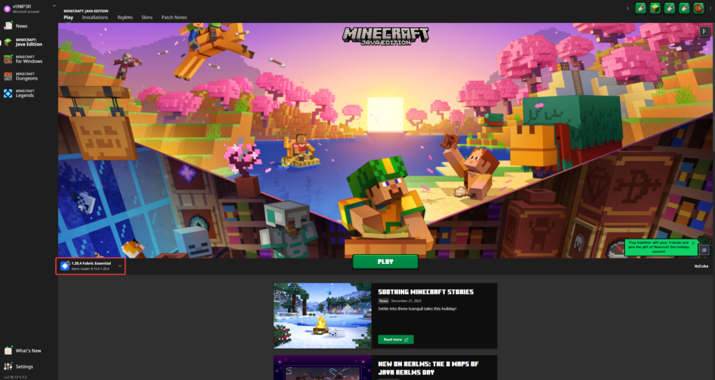 When the Minecraft Launcher finally opens, we will see the Essential Mod selected automatically. We can now launch it to play.
