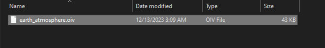 Head over to the Earth’s atmosphere folder and click the earth_atmosphere.oiv file.