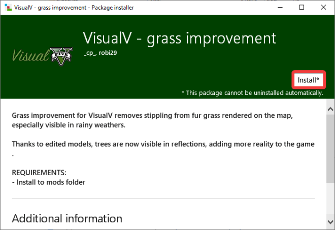 Next, we are going to install the grass.oiv, use the Open Package Installer within OpenIV
