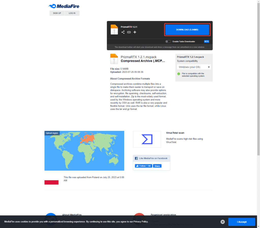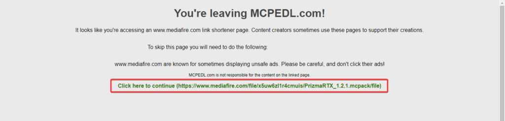 You will now be presented with a MediaFire page, where you are going to click Download for the PrizmaRTX file.