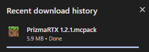 After the download has finished you should now see the PrizmaRTX.mcpack file within your recent downloads.