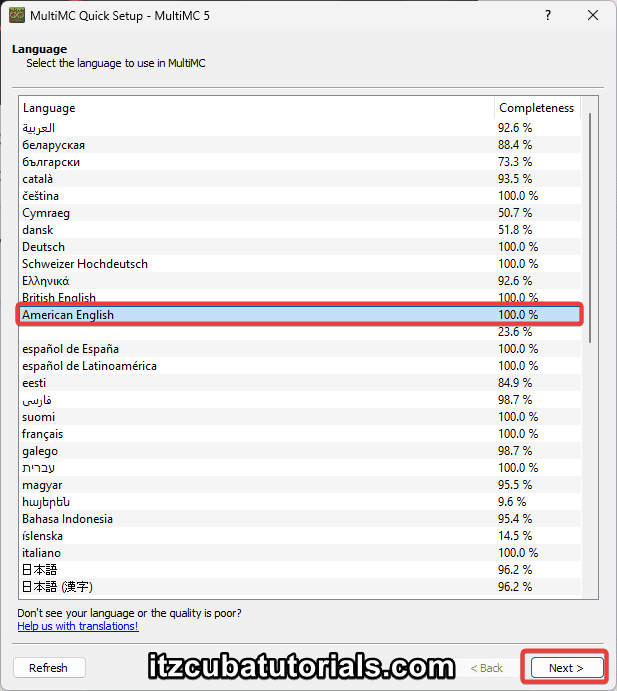 Set the language you want to use and hit next.