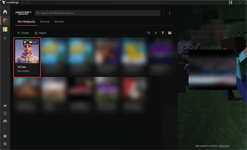 You should now see your Minecraft Modpack within the “My Modpacks” section within the CurseForge launcher.