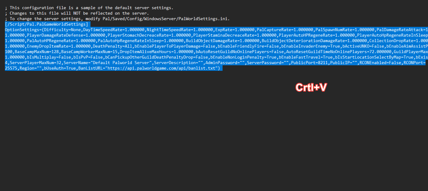 Select any text, starting from [/Script/Pal.PalGameWorldSettings] and copy it.