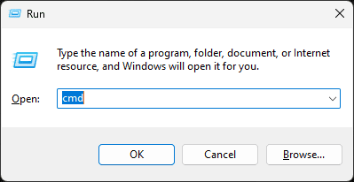 Open your Command Prompt by pressing Win+R and typing cmd, then pressing the Enter Key.