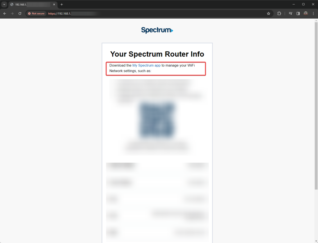 In my case, my router is having me use the Spectrum app, but this might be different for everyone.