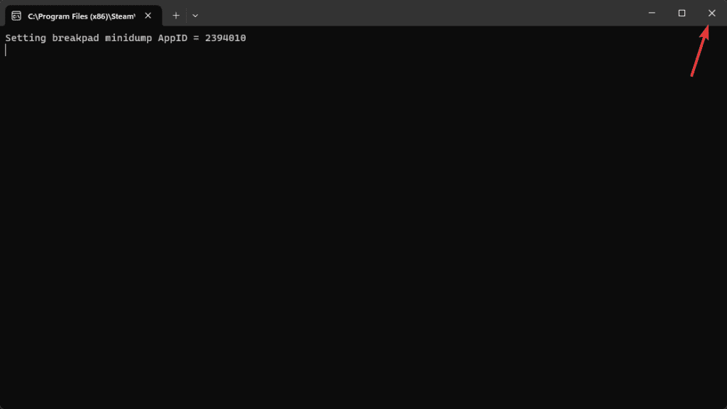 Now launch the Palworld Dedicated Server and when the command prompt opens, close it.