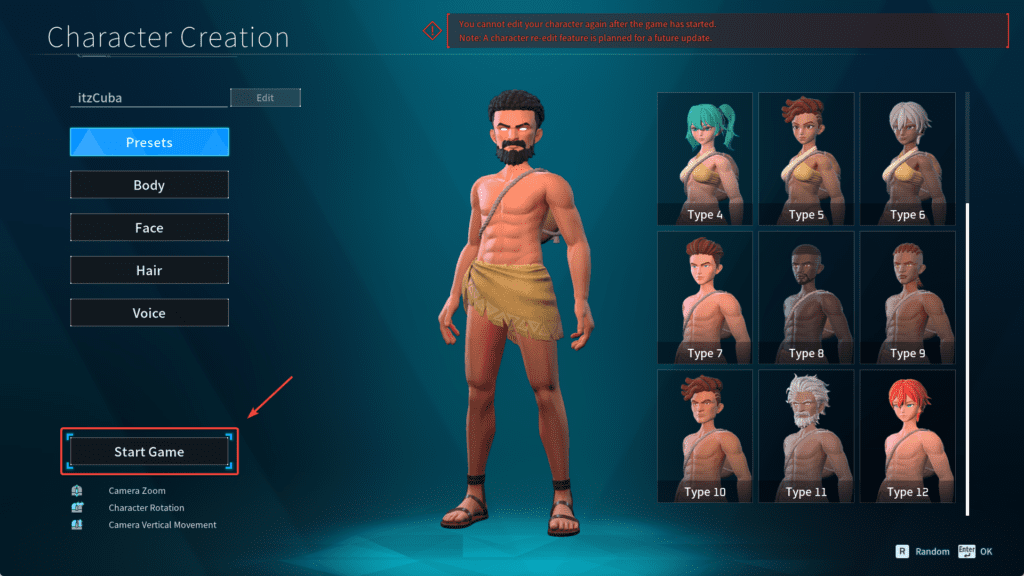 Create your character and make sure you are happy with it because as of today, you won’t be able to change your character later on. However, the developers confirm that in the future, you will be able to re-edit your character after you created it.