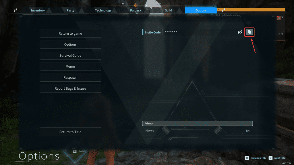 Now press the ESC key in your keyboard, you should see an Invite Code in your menu as well as a button to copy this code to your Clipboard. Copy this code and send it to the friend you want to have join you.